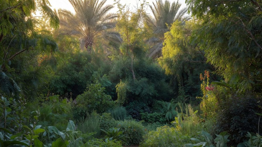 رغم التحديات المناخية الحادة في دول الخليج و المناطق ذات المناخ الصحراوي، تتشكل ملامح توجه جديد في تصميم الحدائق يعتمد على التصالح مع البيئة الصحراوية و فهمها أكثر بدل مقاومتها. و هكذا توجب تعرف أكثر عن فنون و تقنيات الزراعة الجافة (Xeriscaping) و ترويجها، حيث تعود النباتات المحلية مثل نخيل التمر (Phoenix dactilyfera) وأشجار الغاف (Prosopis cineraria) و السمر (Acacia tortilis) و السدر (Ziziphus spina-christi) و القرط (Cordia gharaf) و الطلح النجدي (Vachellia gerrardii / Acacia gerrardii) ، و الليمون و التين و الرمان و الزيتون مدعومة بجهود مراكز الأبحاث الزراعية و المشاتل المحلية المعتمدة و التي تطوّر أصنافًا أكثر قدرة على تحمل الملوحة والحرارة.
