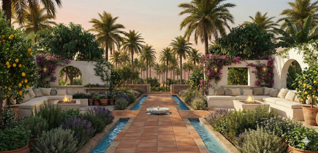 إذا كانت فنون الزراعة وتنسيق الحدائق في البيئات الصحراوية وتحت المناخات الحارّة تمثّل ضرباً من رموز الانتصار على قسوة المحيط الطبيعي، فليست على الحديقة حينئذٍ أن تعتبر مجرّد مساحة خضراء؛ بل هي خطابٌ رفيع يُروى عبر خطوطها المنسّقة بعناية، معبرا عن قدرة الإنسان على التحدّي والابتكار. ففي مواجهة صرامة الصحراء، تُزرَع الخضرة بوصفها علامة نصرٍ مضاعف: نصرٍ على الطبيعة القاسية، ونصرٍ على الزمن المتقلّب.